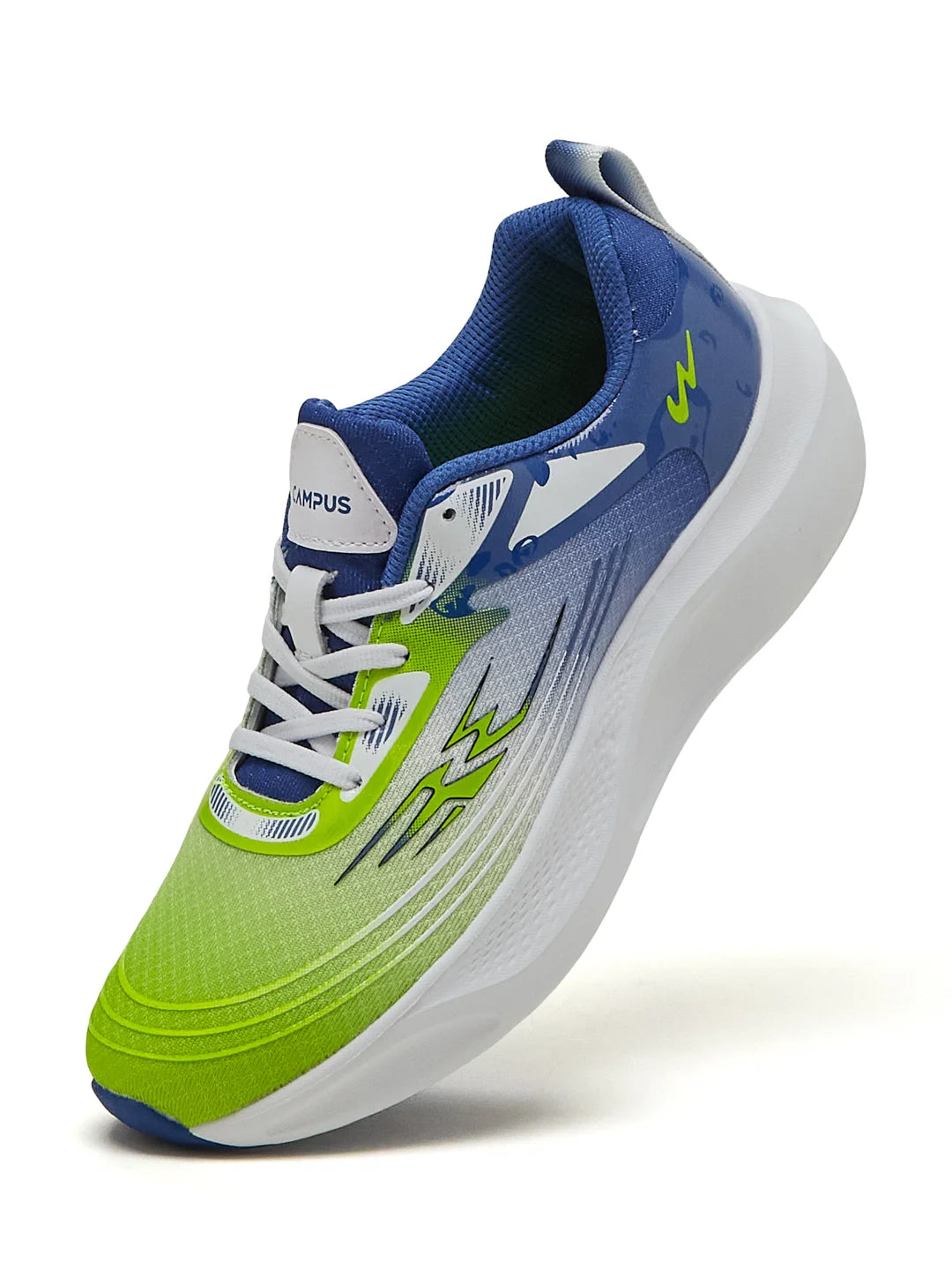 For the champs who love to run, jump, and play all day — the Campus EVE Child’s Running Shoes bring fun, comfort, and energy together. The mesh upper with raised printing keeps it airy and light, letting tiny feet breathe easy through every sprint. With an EVA midsole and TPR outsole, each step feels flexible yet steady, giving them great grip wherever the day takes them. The soft Memory Insole wraps their feet in plush comfort — perfect for school days, park runs, or weekend adventures. Finished in a lively green-and-sky mix, these kicks are built to keep up with every burst of energy and imagination. Occasion: EverydayInsole: Memory InsoleUpper Material: Sublimation Mesh+Raise PrintingTechnology: Anti Slip Sole DesignCare Instructions: Gently scrub with a soft cloth or brush using mild soap and cold water, then air dry in the shade. Avoid bleach and harsh cleaners.Marketed by: Campus Activewear Ltd. D1, Udyog Nagar, Main Rohtak Road, New Delhi, Delhi,110041Country of Origin: IndiaNet Qty: 1 Pair of Shoes